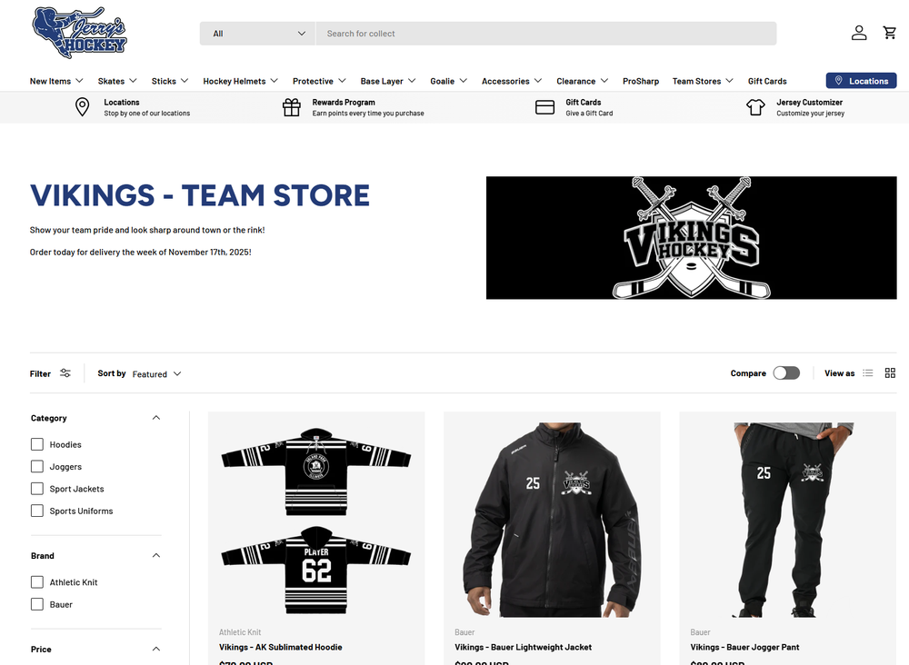 Please see below a link for families to place orders online via Jerry's Hockey Pop Up Store, open until October 12th at midnight. Jerry's can take orders for the following items...